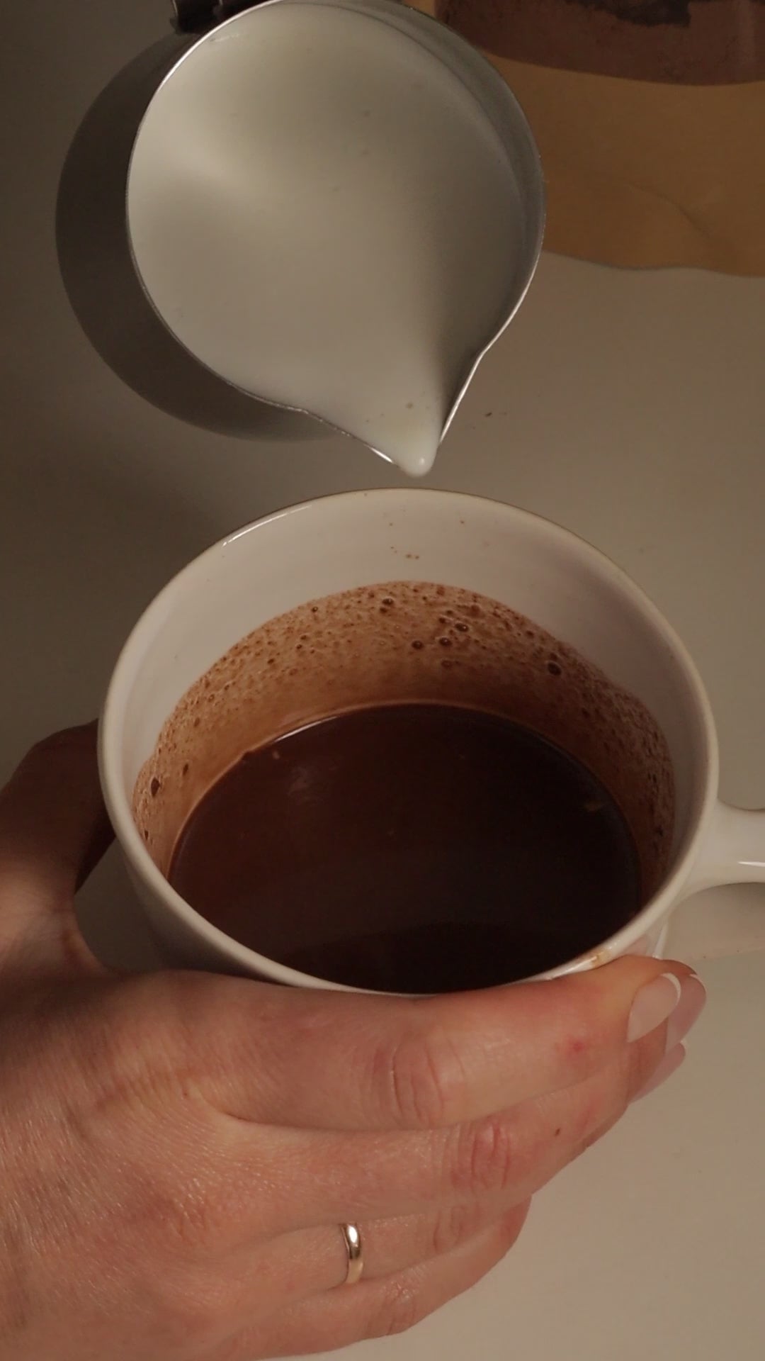 Mix 1-2 tsp with a little hot water into a paste, top with warmed milk of choice.